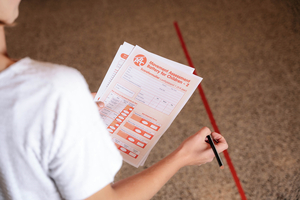 Kinderen blind leren typen volgens de Typ 10 methode.